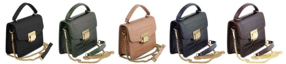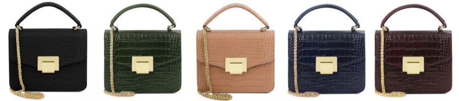 世界中で流行中のクロコダイル型押しレザーを使ったバッグ。当店ではかわいらしい小さめサイズ&ゴールドチェーンのデザインが新登場しました。その他、高級感あるシボ型押しレザーを使ったミニボストンバッグ&ハンドバッグも新作が入荷。イタリアレザーならではの美しい発色5色で展開しています。
