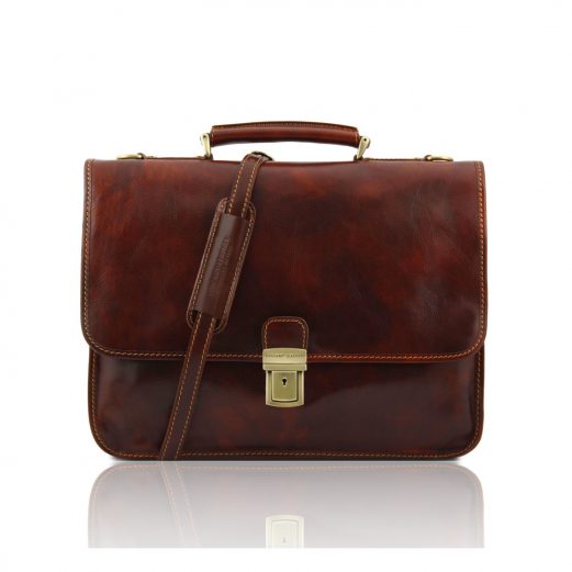 イタリア製ベジタブルタンニンレザーのビジネスバッグ TORINO、ブラウン