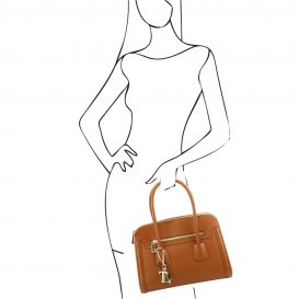 • イタリア製シボ型押しレザーのエレガントなハンドバッグTL BAG、コニャックイタリア製シボ型押しレザーのエレガントなハンドバッグTL BAG、イメージ