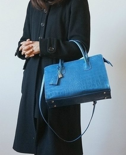 AmicaMako イタリア製バッグ レザー型押しバッグ 青いバッグ シルヴァーノ・ジュリアーニ